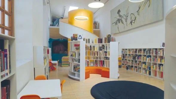 Bibliotecas Infantiles: Olvida el silencio absoluto de las bibliotecas de adultos. Estos espacios están diseñados para que los niños se apropien de la lectura. Los libros muestran su portada (no el lomo) para ser identificados por sus dibujos, y el mobiliario invita a tirarse en colchones o tapetes a descubrir historias.