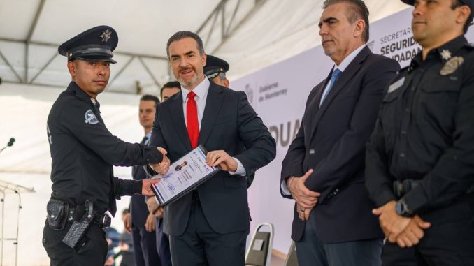 “Estas modernas instalaciones quedarán marcadas en su carrera policial, porque aquí fue donde recibieron la capacitación de este proyecto de vida que apenas empiezan, al salir a las calles de la ciudad, para proteger a la sociedad regiomontana”, expresó el titular de Seguridad y Protección Ciudadana.