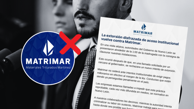 La empresa Materiales Triturados Martínez (Matrimar), ubicada en Cerralvo, denunció al gobierno estatal de Samuel García de extorsionarla con un pago de 50 millones de pesos como condición para continuar con sus operaciones.